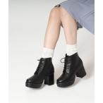 レディース レースアップブーツ 厚底 ミドルブーツ 編み上げ サイドジップ ブラック