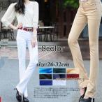 ブーツカット デニムパンツ レディース フレア ロング丈 カラフル ストレッチ ハイウェスト コーデ ジーンズ 美脚パンツ 脚長