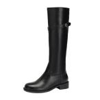 ブーツ レディース ニーハイブーツ ロングブーツ ジョッキーブーツ 本革 ストレッチ ローヒール 長靴 ブラック スエード 大きいサイズ レディースブーツ