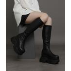 ブーツ プラットフォームストレッチロングブーツ レディース