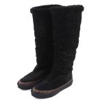 美品△LOUIS VUITTON ルイヴィトン スノーボール・ライン モノグラム ムートンブーツ ロングブーツ ブラック 38.5 イタリア製 レディース【中古】