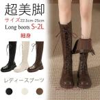 ロングブーツ レディース レースアップロングブーツ 編み上げ ロング丈 ローヒール 美脚 カジュアル おしゃれ 履きやすい 歩きやすい 全2色 大きいサイズ