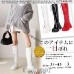 ロングブーツ レディース レースアップ ニーハイブーツ スニーカーブーツ バイカラー フラット サイドジップ トラックブーツ エナメル