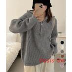 ハーフジップニット セーター スタンドカラー ポロ襟ニット レディース ゆったり 無地 春秋 トップス 長袖 韓国風