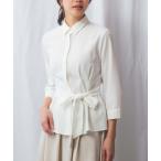 ブラウス シャツ 「NARACAMICIE」麻調ベルト付き七分袖タックブラウス レディース