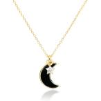 【並行輸入品】上品なマザーオブパールムーンネックレス レディース ブラックオニキス ホワイトクォーツ 三日月と星のペンダント 14Kゴールドメッキ ト