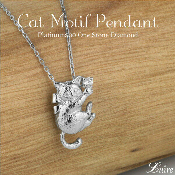 【10%OFF】レディース ネックレス ダイヤモンド ペンダント 猫 ネコ 一粒石 プラチナ900 天然ダイヤモンド PT900 誕生日 プレゼント ブラックフライデー