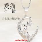 大特価 ネックレス レディース 猫ペンダント 遊び猫 星月 可愛い 母の日ギフト 女性嫁 妻 娘 プラチナ仕上げ シルバー925