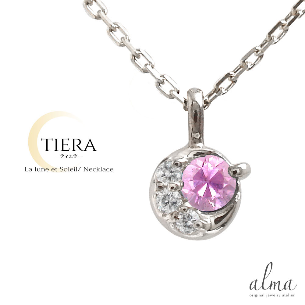 【20%OFFクーポン】プラチナ ネックレス ピンクサファイア ダイヤモンド 月と太陽 ペンダント Pt900 レディース 誕生日 記念日 クリスマス プレゼント Xmas 人気 おしゃれ かわいい 9月 誕生石 花以外 彼女 妻 贈り物 2025 送料無料
