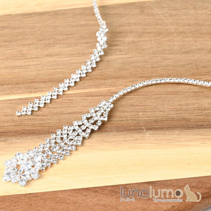 【10%OFFクーポン!2/10(火)1:59まで】lunolumo ネックレス レディース ラインストーン キラキラ 結び Y字 結婚式 二次会 華やか 高見え N アクセサリー