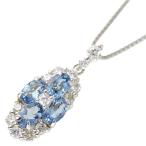 送料無料 本物 アクアマリンダイヤモンドネックレス K18WG ダイヤ0.07ct 0.04ct レディースペンダント おしゃれ キラキラ 可愛い