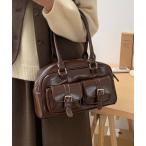 ボストンバッグ ダブルポケットロングハンドルボストンバッグ レディース