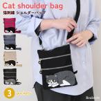 ショルダーバッグ レディース 軽い 斜めがけ 小さめ ミニショルダー サコッシュ 猫 刺繍 3ポケット ファスナー 仕切り 撥水 スリム 機能的