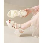 サンダル 厚底サンダル 太ヒールフリルサンダル美脚 レディース