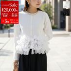 Mewl ミュール カーディガン M261-97027 レディース リボン フリンジ チュール ニット クルーネック パールボタン 長袖 カラー2色