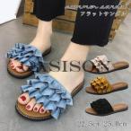 サンダル ビーチサンダル フリル レディース ミュール ぺたんこ ローヒール フラット 靴 フリル シューズ スリッパ 滑り止め 疲れにくい 夏