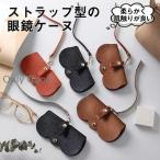 メガネケース PUレザー メンズ 眼鏡ケース 首掛け ストラップ付き レディース サングラスケース レトロ ソフトケース 男女兼用 メガネ収納