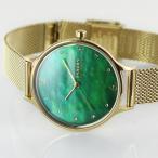 スカーゲン SKAGEN 腕時計 レディース ゴールド メッシュベルト グリーン 北欧デザイン クリスマス プレゼント 爆買