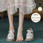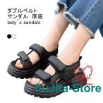 サンダル レディース ベルトサンダル ダブルベルト マジックテープ止め 前あき 厚底 滑り止め 痛くない シンプル 美脚 夏