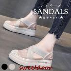 サンダル レディース 歩きやすい ストラップサンダル ベルトサンダル ハイヒール シューズ 厚底シューズ メッシュ お洒落 編みデザイン 滑り止め シンプル