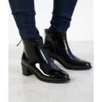長靴 レインブーツ 配色 パテント加工 ヒール ショート レイン ブーツ レディース