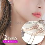 ロングイヤリング ロングピアス イヤリング ピアス アクセサリー アクセ レディース フラワー 花 ラインストーン フェイクパール チェーン ロング