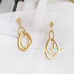 ピアス リング フープ ゴールド ロング 揺れる アンティーク アンバランス ロングピアス 楕円
