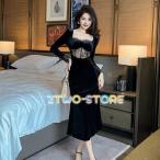 パーティードレス ロング パーティードレス 大きいサイズ パーティードレス 袖あり 長袖 黒 結婚式 ワンピース 結婚式 ドレス 結婚式お呼ばれドレス