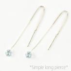 ロングピアス レディース プラチナ アクアマリン アメリカンピアス 3月誕生石 揺れる 地金ピアス シンプル 一粒 ジュエル 4mm クリスマス