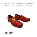 MANA マナ 靴 レディース ヴィンテージ ビット シューズ 赤 革 おしゃれ 春 フリンジ ローファー ヒール 561004 レッド カッコいい 話題 大人 送料無料