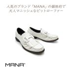 MANA マナ 靴 レディース ヴィンテージ ビット シューズ 白 革 おしゃれ 春 フリンジ ローファー ヒール 561004 ホワイト カッコいい 話題 大人 送料無料
