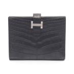 【10%OFFクーポン対象】エルメス HERMES ベアンコンパクト 二つ折り財布 財布 アリゲーターマット アリゲーターマット レディース ブラック系 【中古】