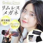 リムレス メガネ レディース 女性 メンズ 調光 伊達メガネ ブルーライトカット スクエア