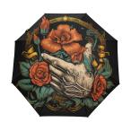 【並行輸入品】 KAAVIYO 怖いゴールデンスカルローズ傘 防風 自動折りたたみ傘 自動開閉 メンズ レディース キッズ KAAVIYO Sca
