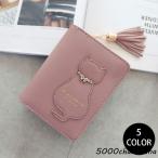 財布 二つ折り カード入れ レディース ファッション雑貨 ファッション小物 小銭入れ スナップボタン 無地 猫 ネコ 定期入れ コンパクト タッセル