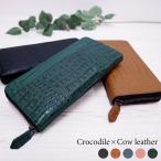 バレンタインセール カイマンワニ革×牛革型押し ラウンドファスナー 長財布 ワニ革 本革 RODANIA ロダニア
