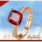 指輪 レディース リング 18kGP 大粒 キュービックジルコニア CZダイヤモンド レッド サイズフリー アレルギー