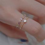 指輪 レディース リング 2点セット 一粒 パープル フリーサイズ カジュアル おしゃれ ゴールド 18kgp 女性 プレゼント