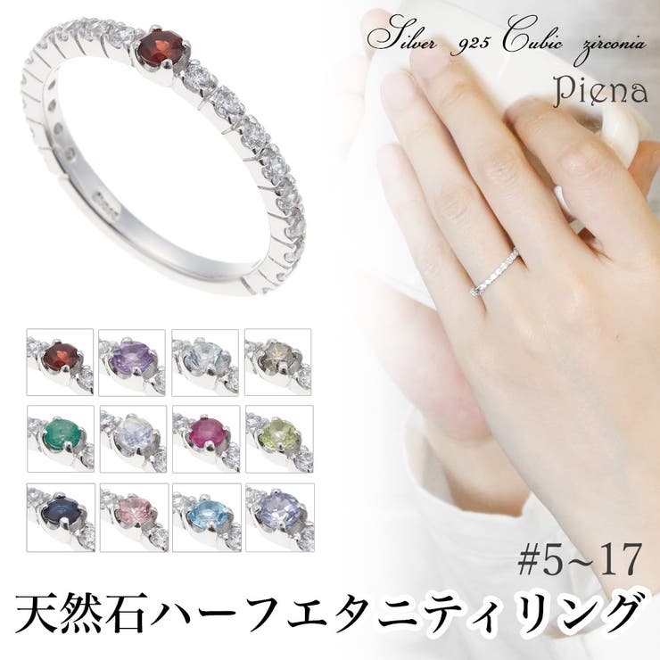 【10%OFFクーポン!2/10(火)1:59まで】アクセサリーショップPIENA 1粒誕生石とキュービックジルコニアのハーフエタニティリング 天然石 シルバー925製 バースデーストーン シンプル 大人かわいピンキー レディース アクセサリー