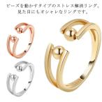 ストレス解消リング 指輪 リング レディース 金属 ビーズ付き 可動ランナー ストレス解消 不安を和らげるリング 調節可能 回転
