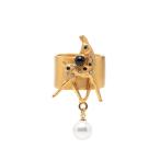 フェンディ モンスター バグズ アイ ラインストーン リング 指輪 #M ゴールド メッキ フェイクパール レディース FENDI 【中古】