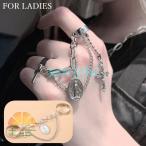 フィンガーリング 指輪 チェーン 韓国ファッション ロック U字型 開口タイプ 調節可能 メンズ レディース
