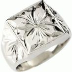 プラチナ 印台 リング ハワイアンジュエリー 指輪 レディース pt900 太め 幅広 ピンキーリング 婚約指輪 プルメリア 花 マイレ 葉