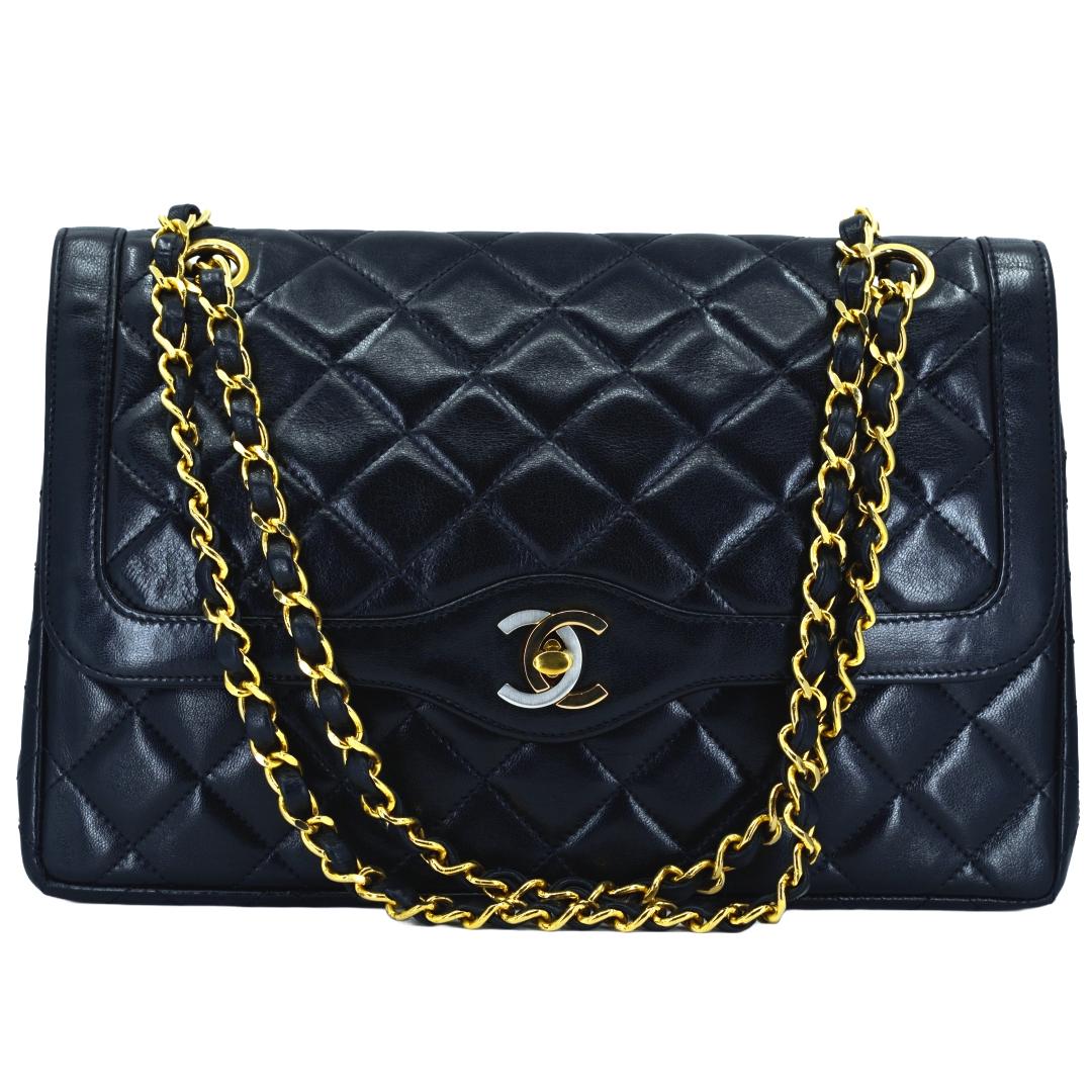 CHANEL シャネル パリ限定 マトラッセ Wフラップ チェーン ショルダーバッグ ラムスキン ブラック ラムスキン レディース ブランドバッグ/ブランド鞄 /ショルダーバッグ/肩掛けバッグ/斜めがけバッグ/クロスボディバッグ/メッセンジャーバッグ 【中古】