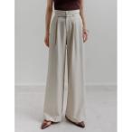 スラックス パンツ 細ベルトハイウエストタックワイドパンツ レディース