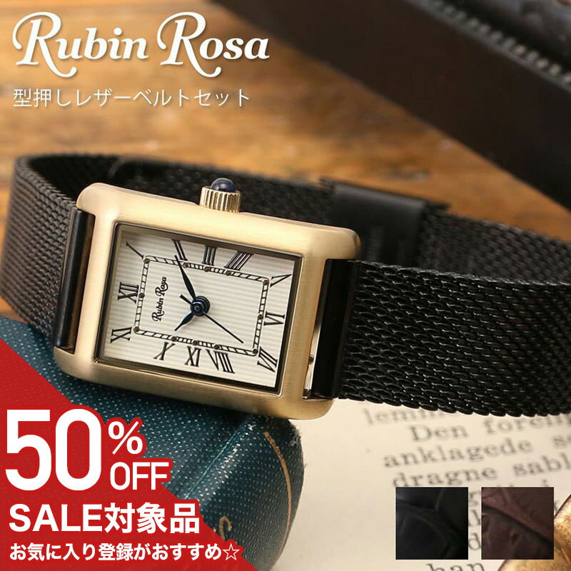 【50%OFF半額 16500円引】 【定期的な電池交換不要】浴衣 着物 ベルトセット ルビンローザ 腕時計 RubinRosa 時計 Rubin Rosa レディース 替えベルト 女性 ソーラー 華奢 細ベルト スクエア型 革ベルト 小さめ アンティーク レトロ 調 おしゃれ プレゼント クリスマス ギフト