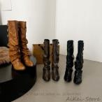 ロング ルーズブーツ ジョッキーブーツ レディース 美脚 ブーツ 厚底 歩きやすい 痛くない 筒周り ハロウィン ゆったり サイドジッパー ブーツ 太ヒール 女性
