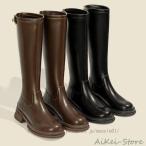ロングブーツ スムース 太ヒール ロング ブーツ 厚底 レディース ヒール 秋 冬 歩きやすい 通勤用 仕事 痛くない ベーシック シンプル 茶 ブラウン