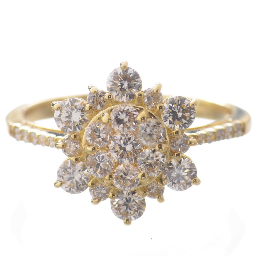 【お買物マラソン★10%OFFクーポン】指輪 レディース 18金 イエローゴールド ダイヤモンド フラワー リング K18 18K 鑑別書付き 日本製【人気アイテム】
