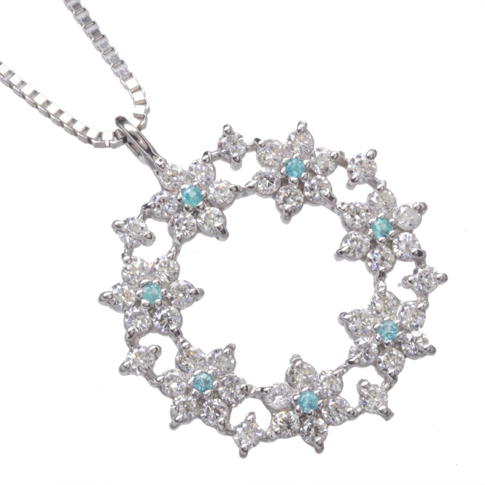 【お買物マラソン★10%OFFクーポン】ネックレス レディース パライバトルマリン ダイヤモンド プラチナ Pt950 フラワー サークル 刻印入り 鑑別書付き 日本製 カラーストーン【人気アイテム】
